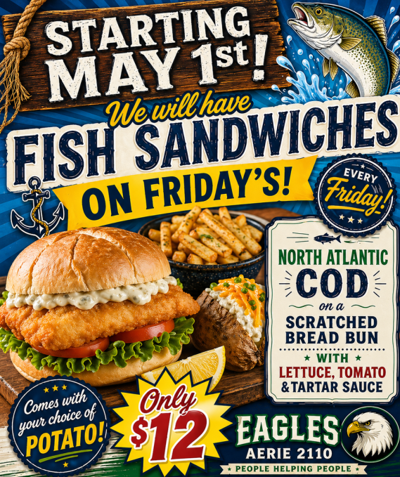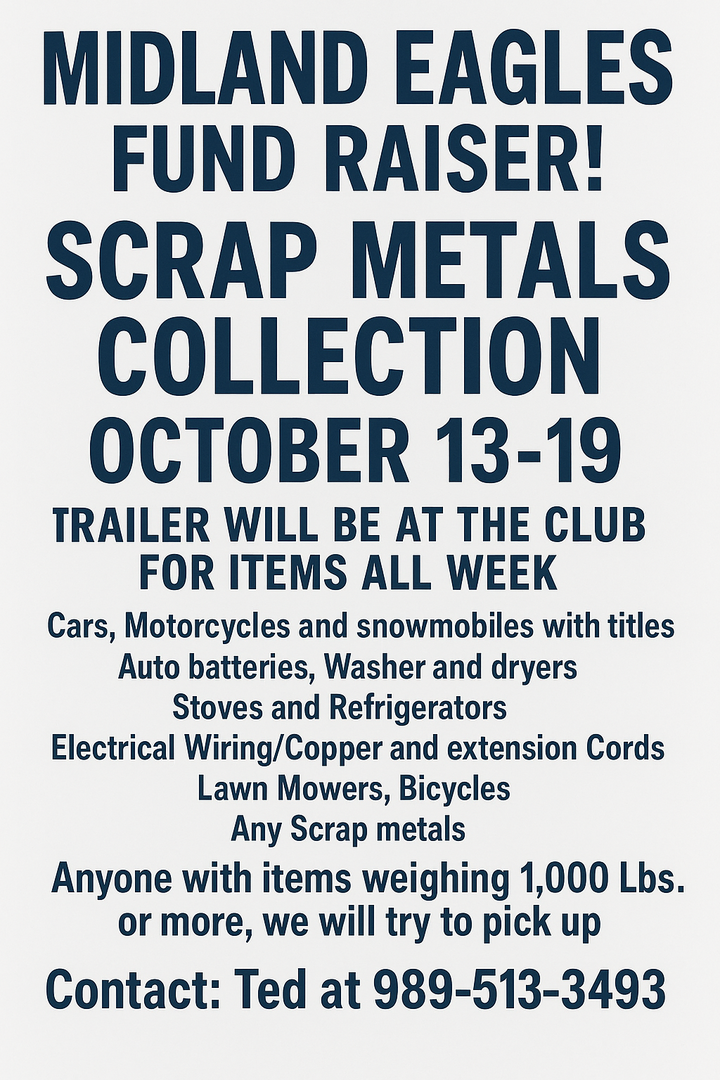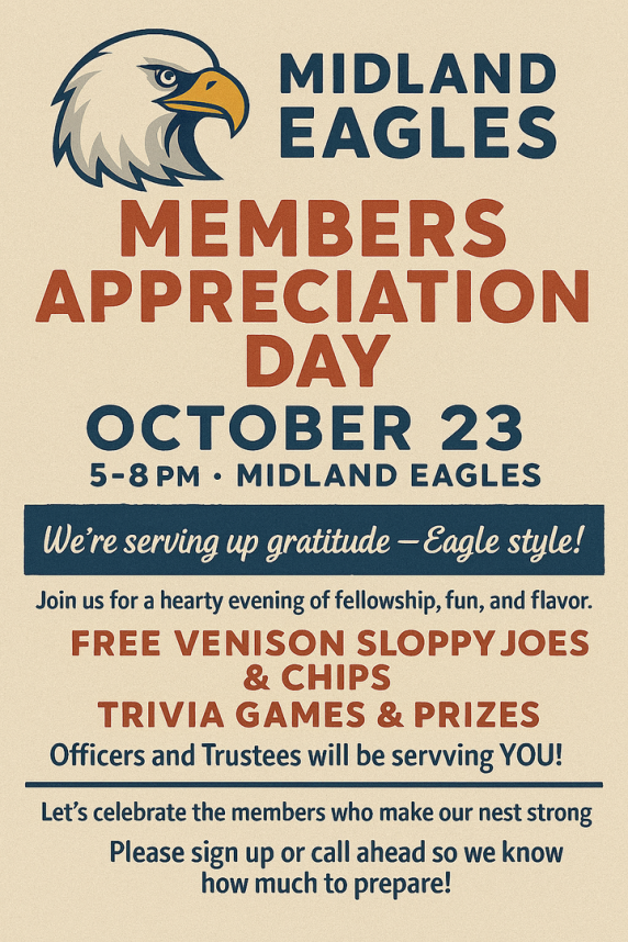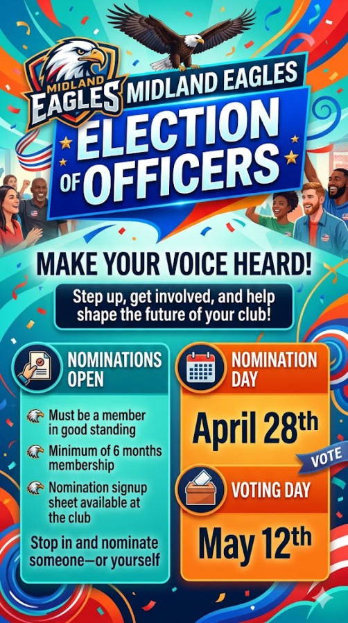 Midland Aerie meetings are every 2nd and 4th Tuesday of Each Month-